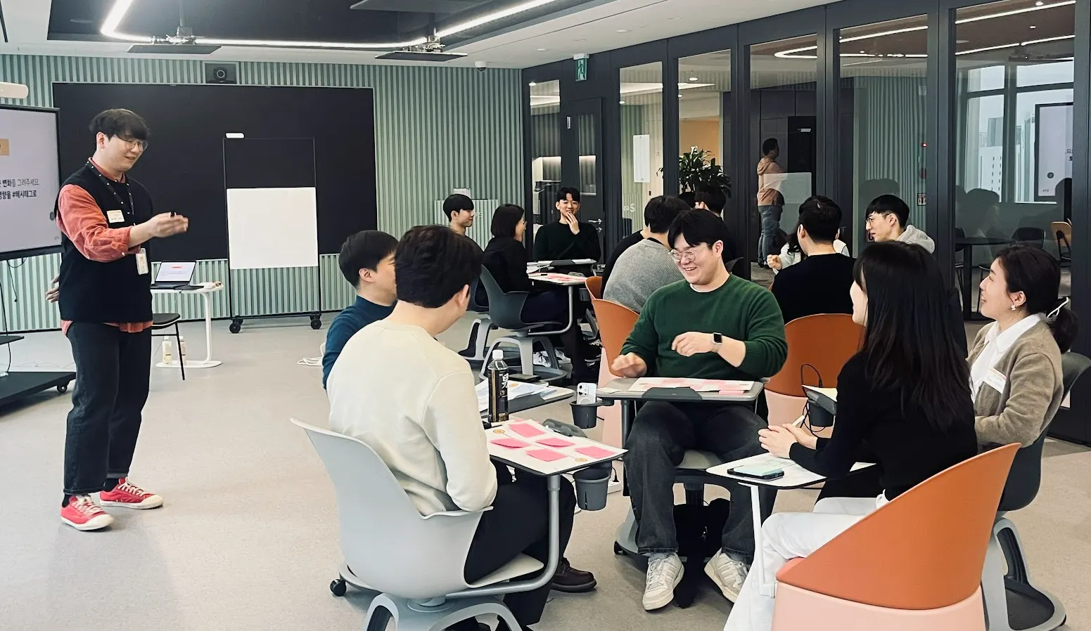 대신, 한번의 알찬 온보딩 교육에서 전체적인 디자인씽킹에 대하여 진행하며, 프로젝트 일정과 집중이 필요한 부분등을 고려하여, 보충 교육이 가능해졌습니다.