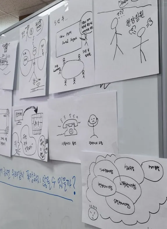 목적과 결과 : PI를 위해 TF에서 두 달 동안 리서치(인터뷰, 벤치마킹 등)한 내용들을 정리하고 공유하여 서로의 생각을 통합하는 시간을 갖음으로써, PSM에 대한 업무와 시스템 상의 어려움을 찾아, PSM포털에 반영해야 할 기회영역을 도출했습니다.