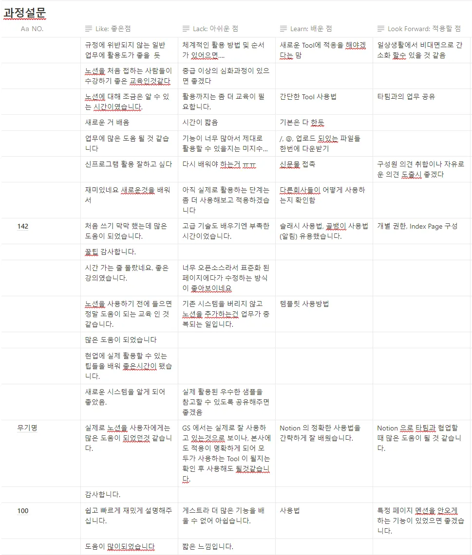교육 진행 후 접수한 피드백