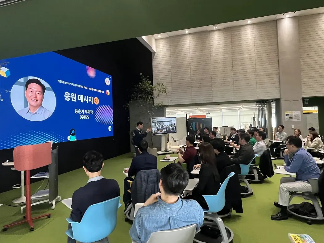 이후에는 (주)GS 허준녕 부사장님께서 올해 GS그룹의 투자 방향을 설명해주시고, 김진아 상무님과 함께 ‘52g와 카탈리스트의 역할’에 대해 알아보는 시간을 가졌습니다. 홍순기 부회장님도 시간을 내어 참석하셔서 카탈리스트 8기 여러분들을 응원해주셨습니다.