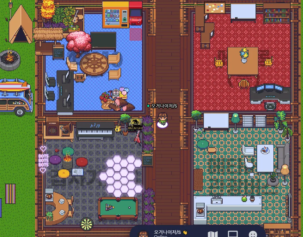 (마치 랜선 집들이를 하는 기분이었어요. 와글와글 몰려다니는 아바타들이 어찌나 귀엽던지!