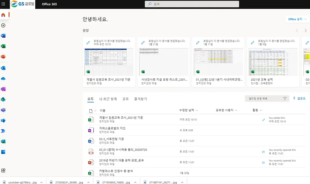 Office.com 로그인 접속하니 제가 작업했던 모든 파일이 클라우드에 저장되어있습니다.