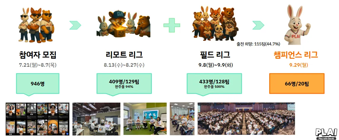 리모트 리그가 'PLAI Everywhere'라는 이름으로 공간의 한계를 넘어섰고, 필드 리그가 'PLAI Together'라는 주제로 사람과 사람이 모여 혁신의 힘을 증명했다면, 이제 마지막 무대는 챔피언스 리그입니다.