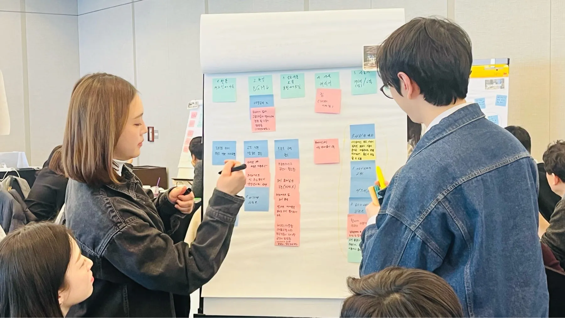 참가자들은 실제 업무 속에서 겪고 있는 문제를 공유하며, 단순한 불편함을 넘어 근본적인 원인을 탐색하는 시간을 가졌습니다. 고객 경험을 향상시키기 위해 핵심 문제를 도출하고 이를 기반으로 아이디어를 발전시켜 나갔습니다.