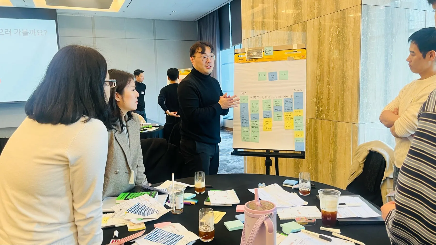 워크숍 중간에는 파르나스호텔 총지배인님의 인스퍼레이션 타임도 있었습니다. 일본의 대표적 호텔 체인 ‘호시노리조트’의 혁신 사례를 공유해주셨는데요. 호시노리조트는 고객 경험을 최우선으로 한 서비스 혁신과 지역 특색을 반영한 운영 전략으로 유명합니다. 이러한 사례를 통해 참여자들은 파르나스 호텔이 나아가야 할 방향과 일하는 방식의 변화 등에 참고할 수 있는 인사이트를 얻을 수 있었습니다.
