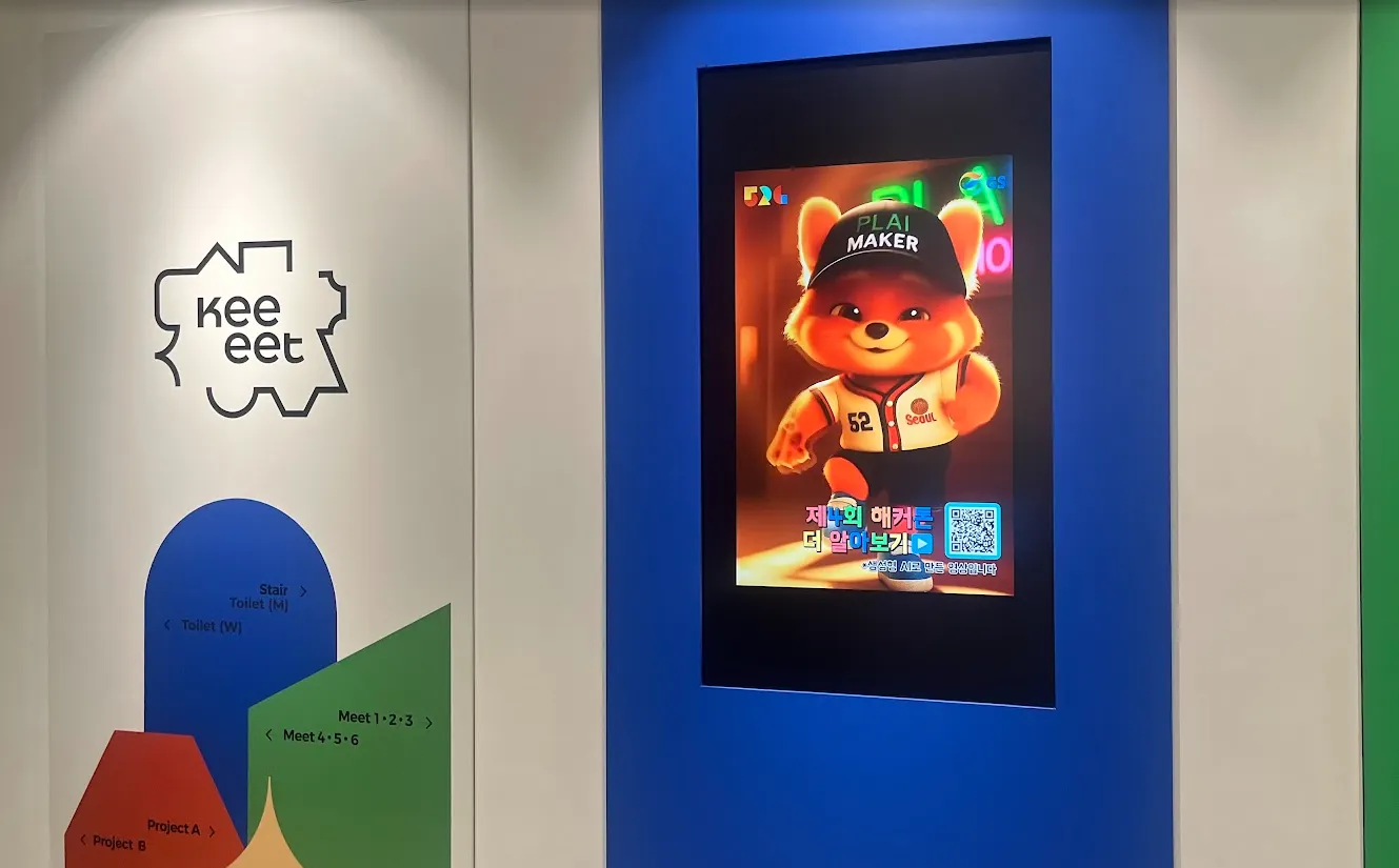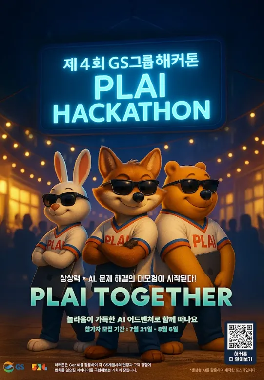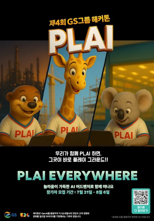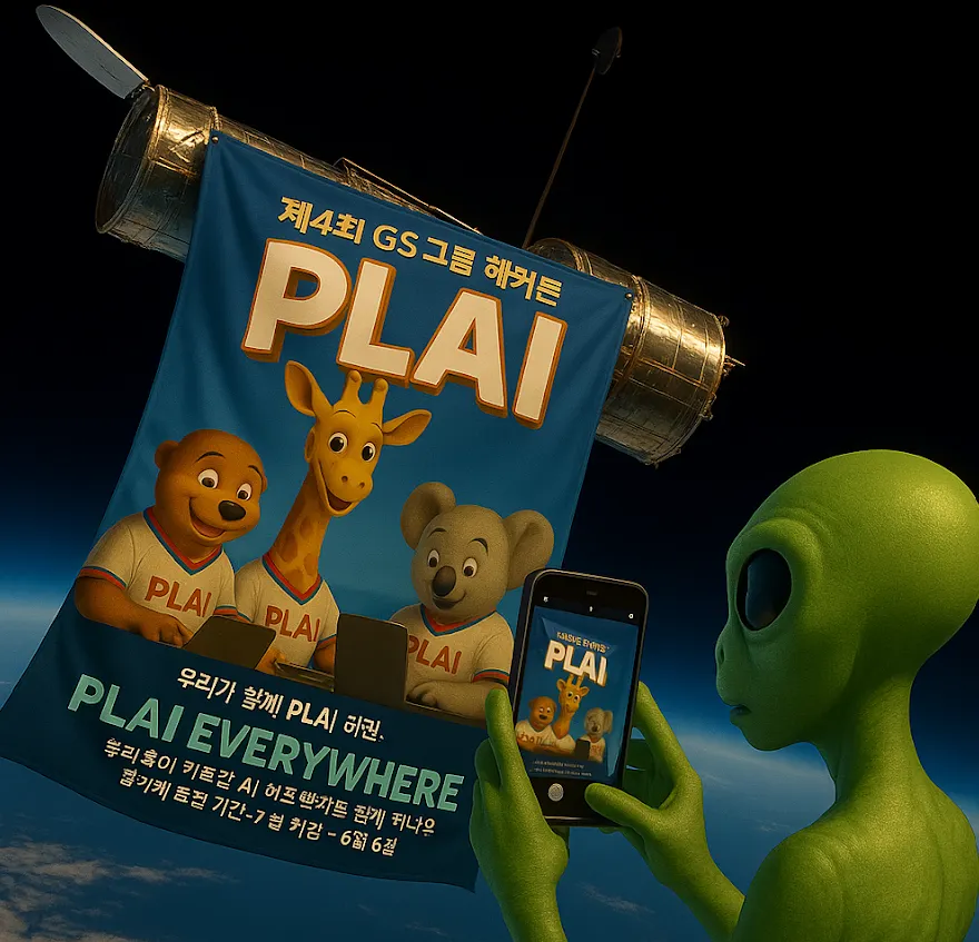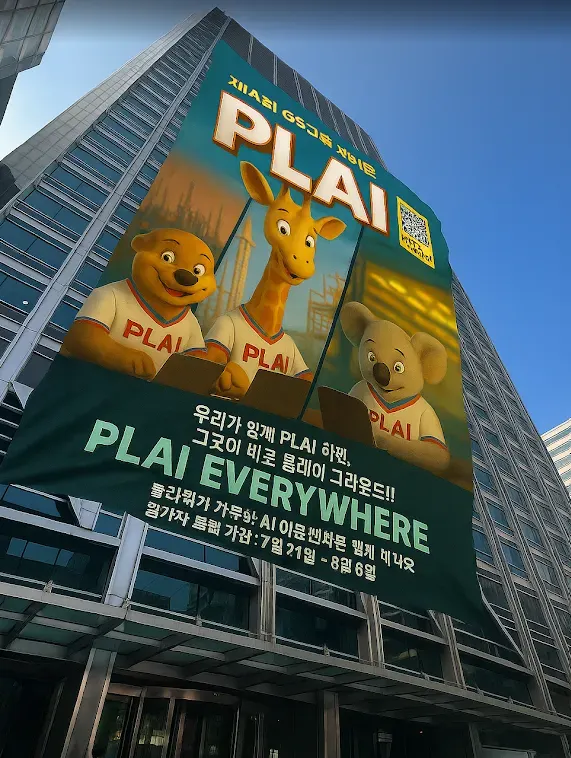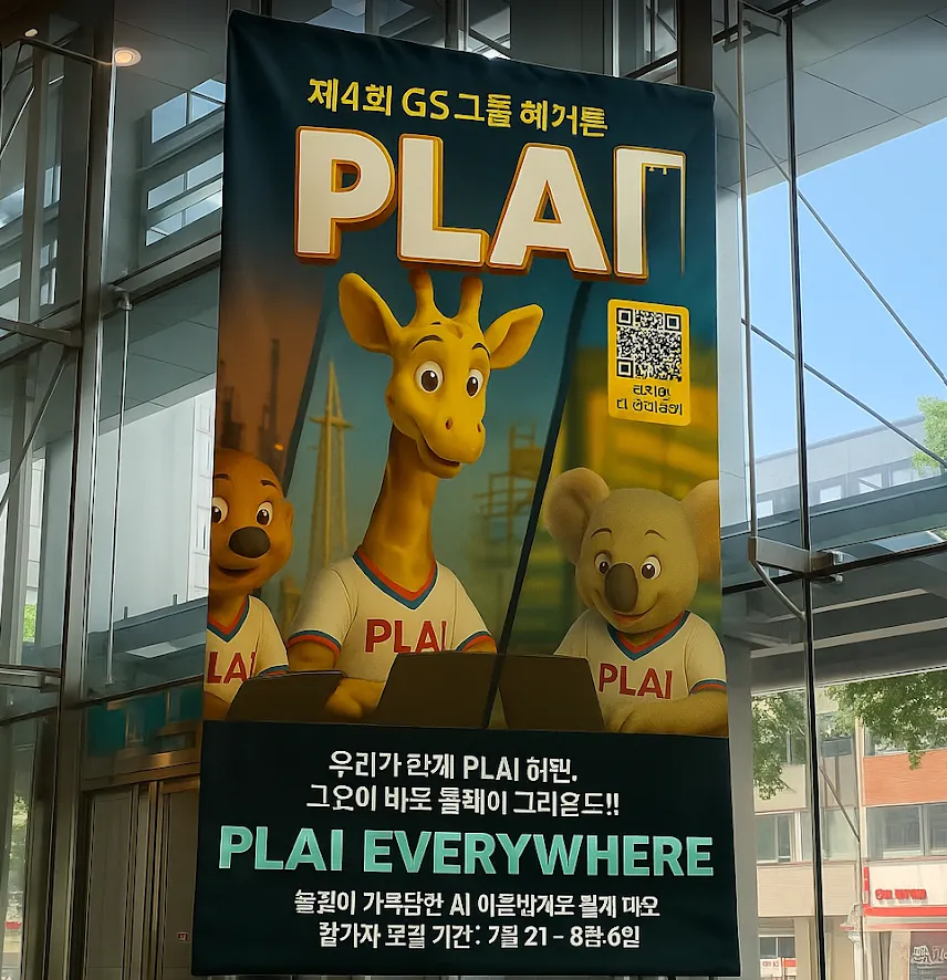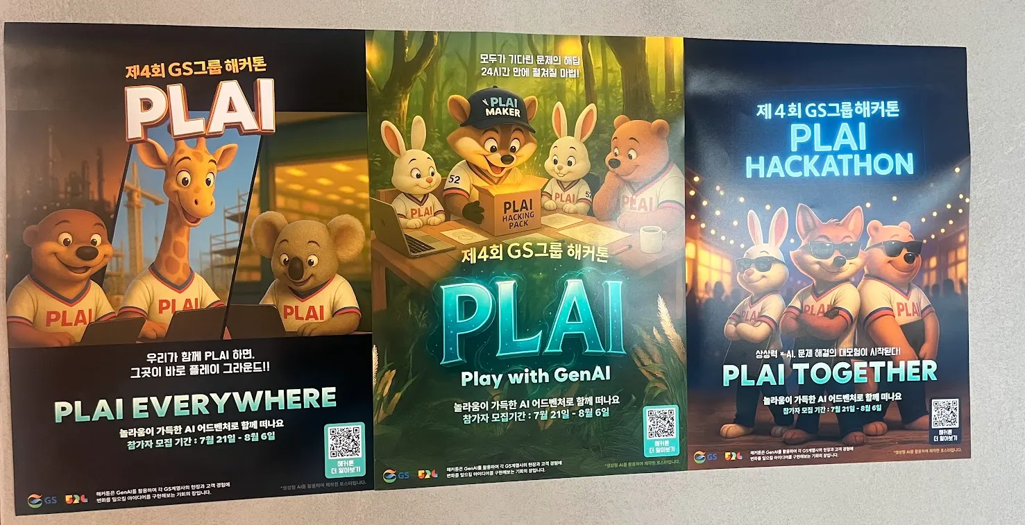 해커톤의 분위기를 만들기 위해, 본격적인 홍보는 7월 21일부터 시작되었습니다. 그와 함께 GS 역삼타워는 해커톤의 상징인 귀여운 AI 동물 캐릭터들로 가득 채워졌습니다. 킷, 그레잇, 그리고 아트센터까지 해커톤을 알리는 포스터와 영상은 자연스럽게 우리의 일상 공간을 물들이고 있습니다.
